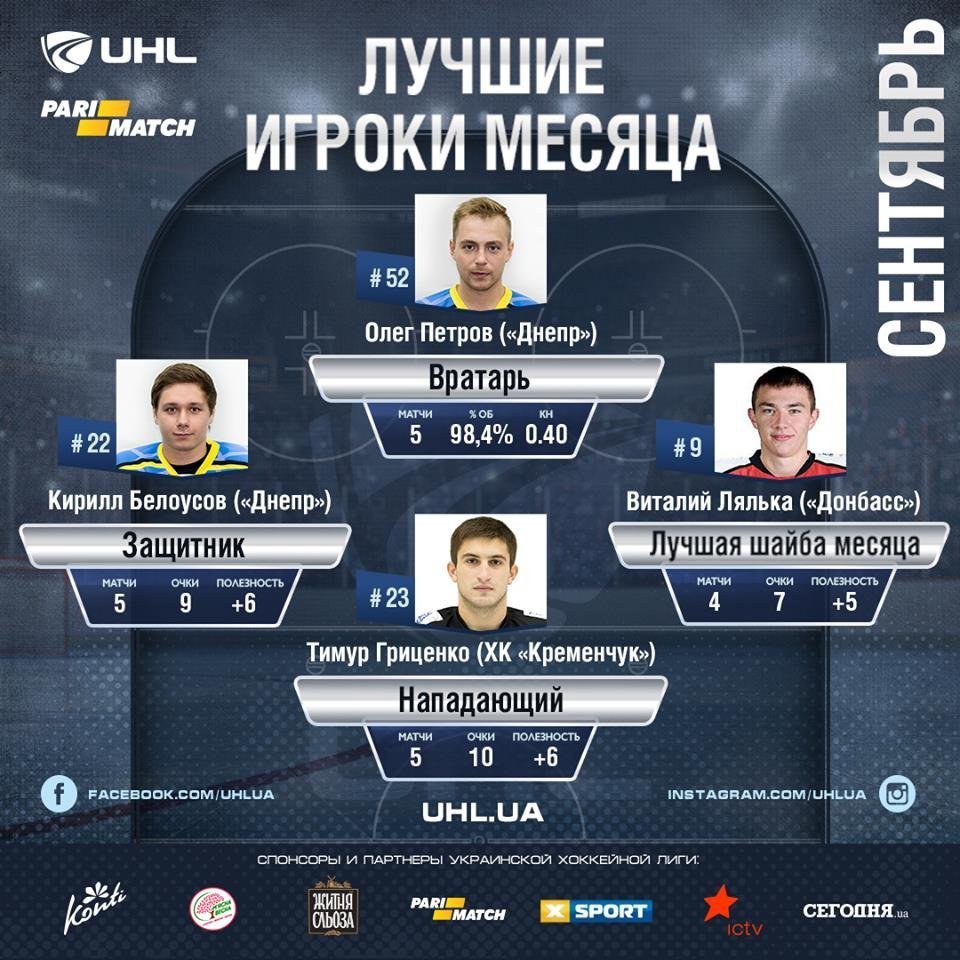 До речі, автора вирішальної шайби капітана ХК «Кременчук» херсонця Тимура Гриценка, визнали кращим нападником вересня. Капітан «городян» відзначився закинутими шайбами в 4 матчах з 5, в сукупності набравши 10 (5+5) очок при коефіцієнті корисності +6. Такі показники дозволили Тимуру Гриценку вийти на перше місце в списку бомбардирів УХЛ.