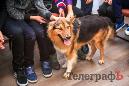 Школьники сразу же стали гладить и обнимать собак. Крики радости, восторг. И если Коле и Молли такое было очень даже по душе, то Мышка под конец встречи лезла на руки сотрудниками «Спецсервиса».