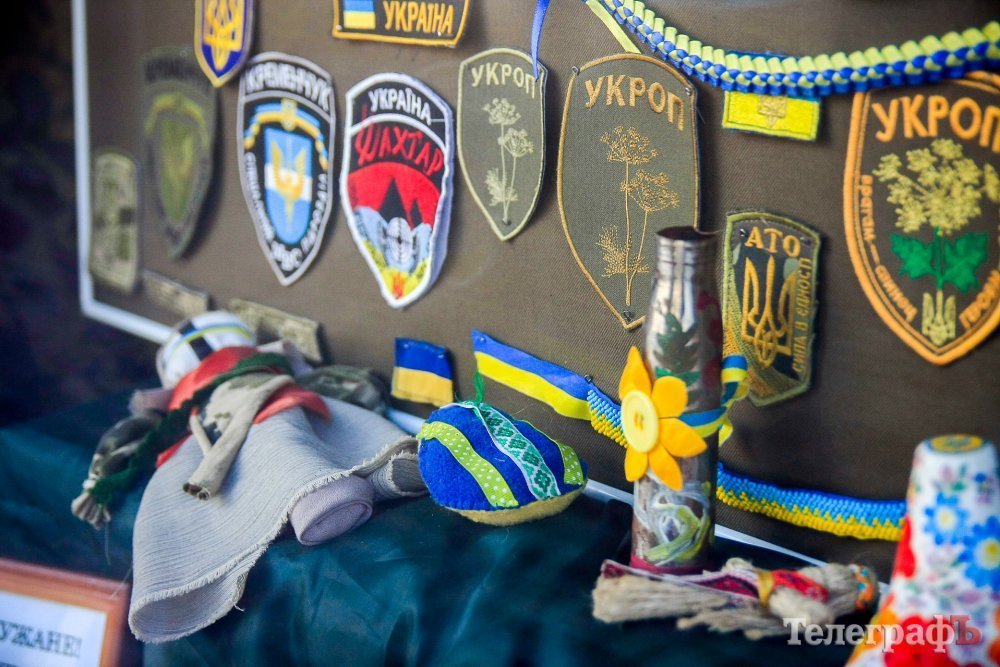 Со 2 по 6 октября в витрине детской библиотеки в Кременчуге работала выставка военной формы ко Дню защитника Украины. В витрине были представлены образцы формы и шевронов украинской армии.