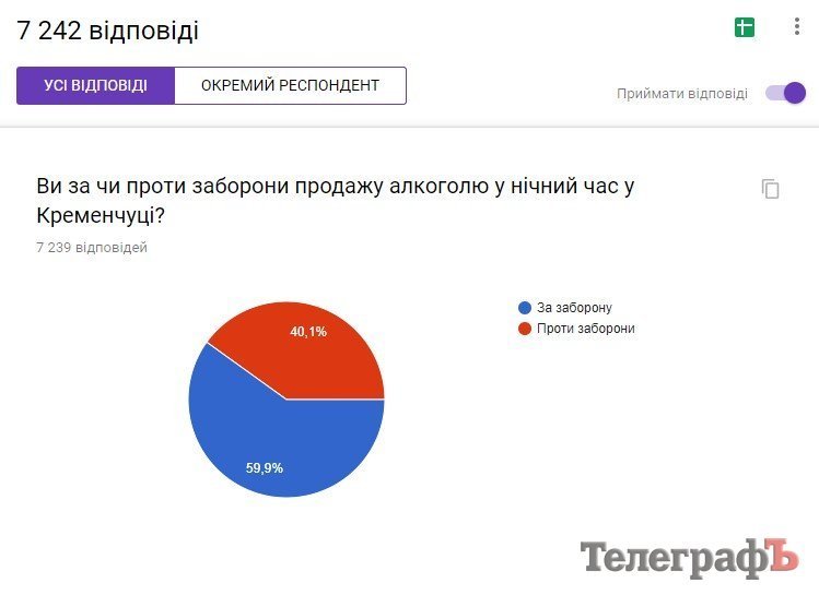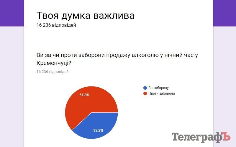 На сайте «Кременчугского Телеграфа» с 3 октября идёт голосование среди читателей относительно того – они за или против запрета продажи алкоголя в ночное время в кременчугских магазинах (с 22.00 до 8.00). Данный проект решения, о запрете, будет рассматриваться депутатами городского совета на сессии 11 октября. Среди депутатов нет единства в решении данного вопроса. О том, какие идут дискуссии, вы можете прочитать в нашем предыдущем материале: Как идёт дискуссия. Почему за. Почему против.