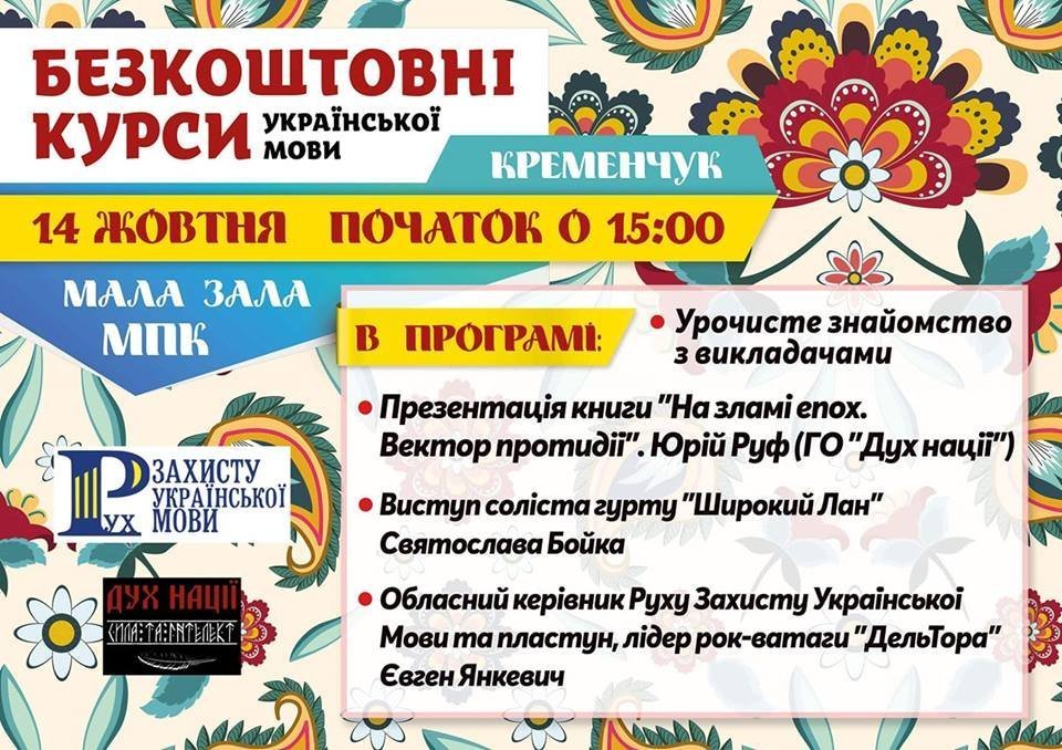 14 жовтня о 15.00 в малій залі Міського палацу культури відкриються безкоштовні курси української мови.