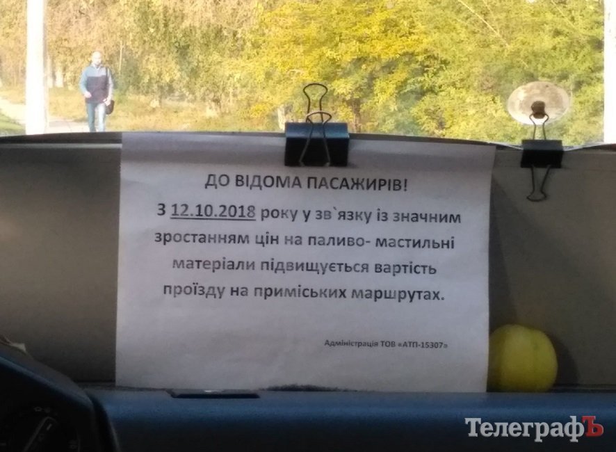 – У зв’язку із значним зростанням цін на паливо-мастильні матеріали підвищюється вартість проїзду на приміських маршрутах,- йдеться в об’яві у маршрутці 231.