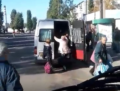 10 октября в группе сообщества взаимопомощи на дорогах Drive Help Kremen появилось видео нетривиальной посадки пассажиров в маршрутку – через зад. Дело было на остановке «Развилка» на Раковке.