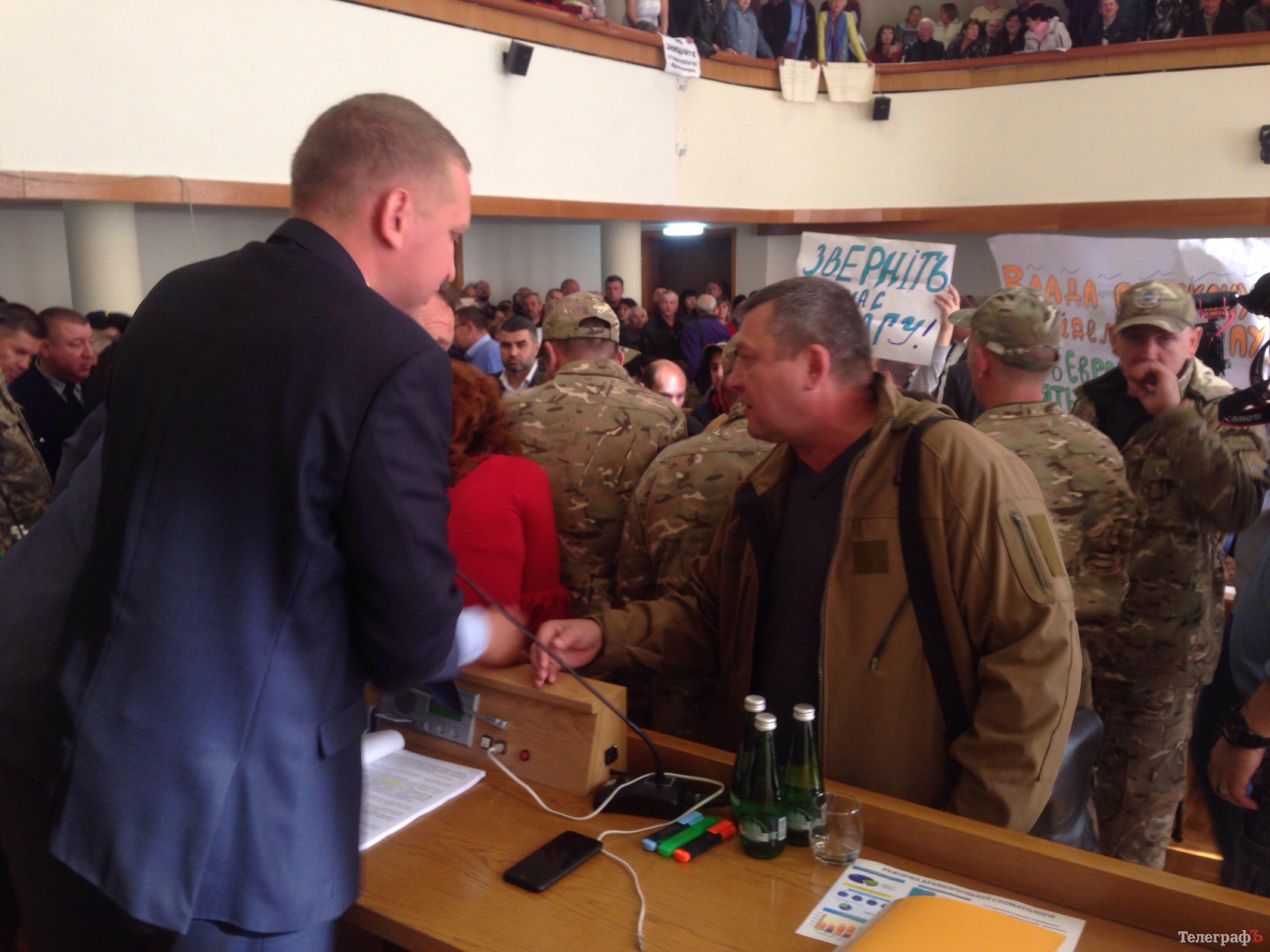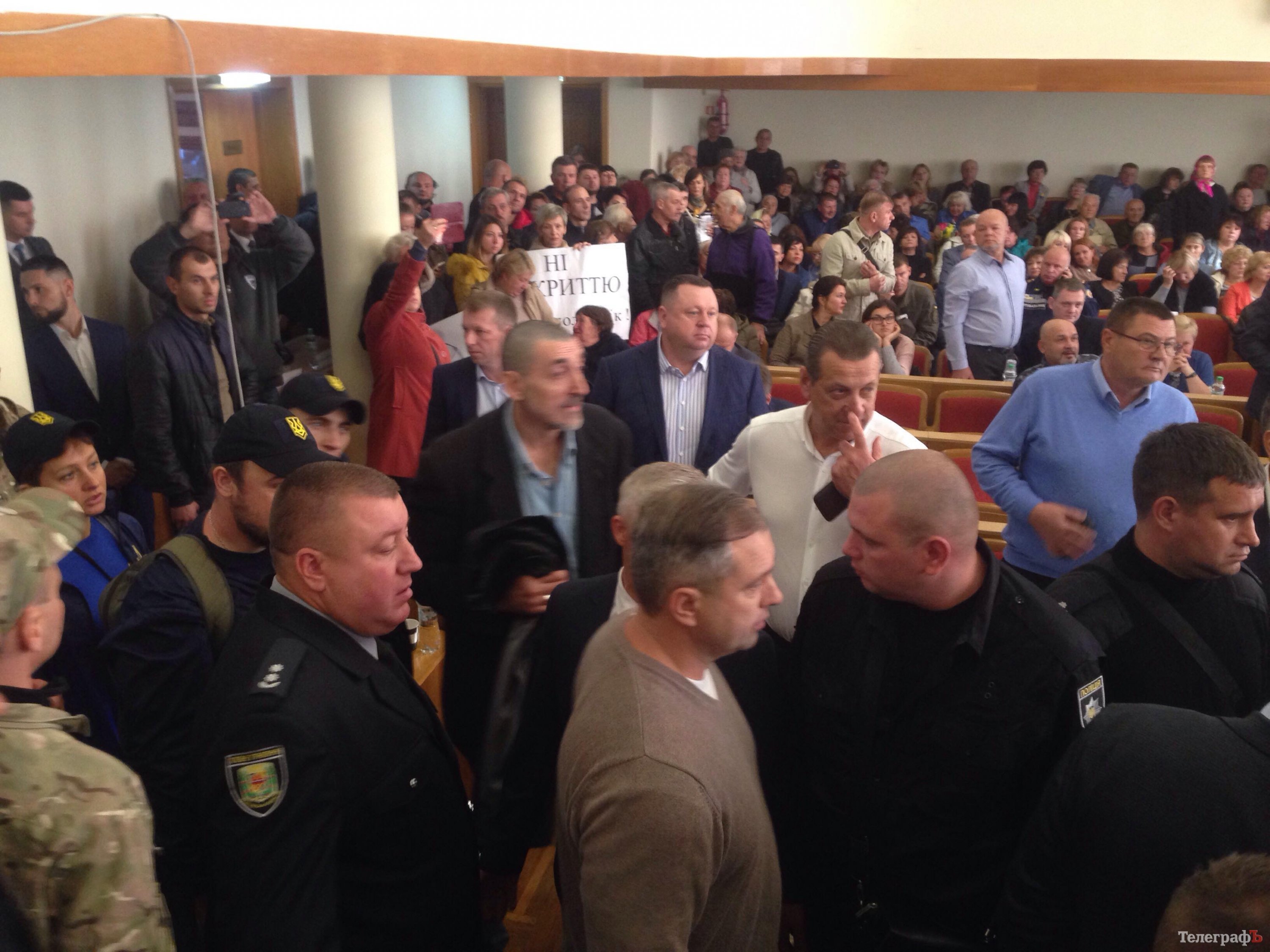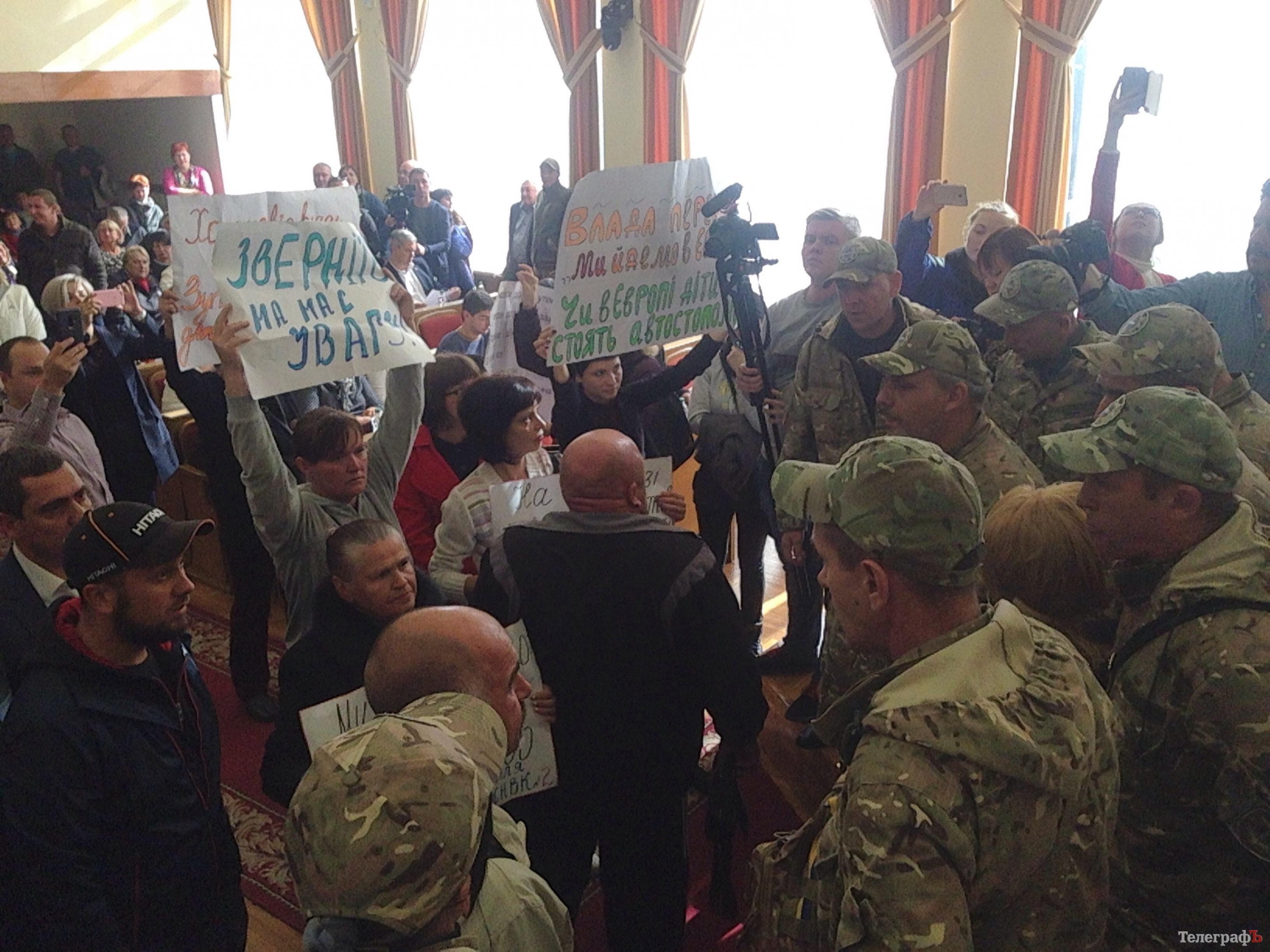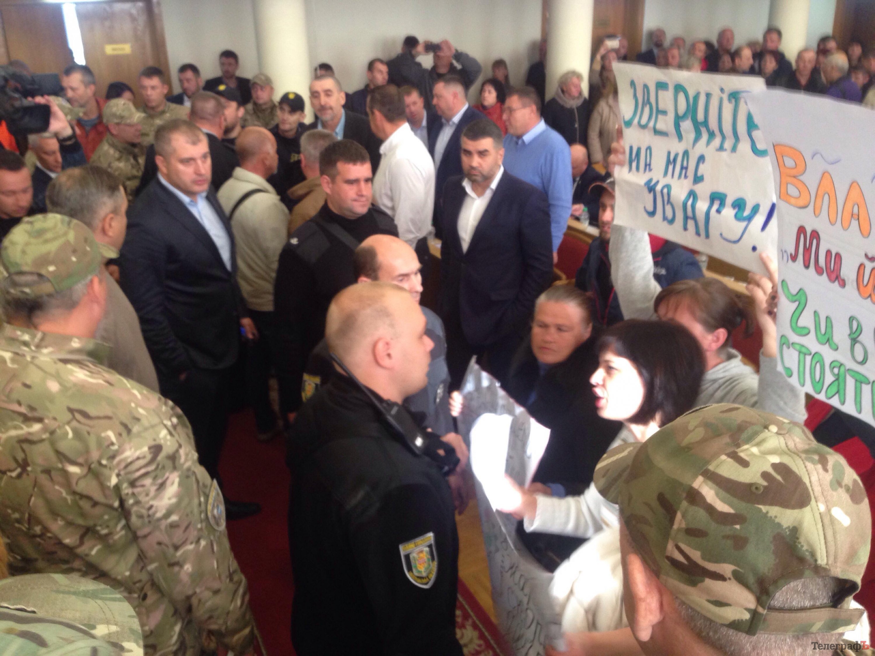 Около 10.43 работа сессии Кременчугского горсовета была заблокирована активистами, которые пришли в зал с требованием не принимать решений о реформировании стоматологической помощи в городе.