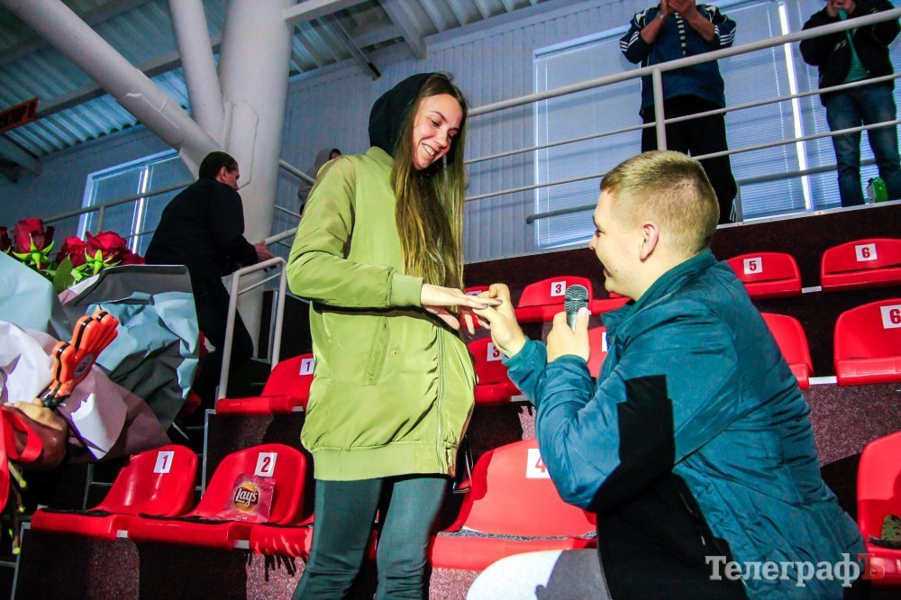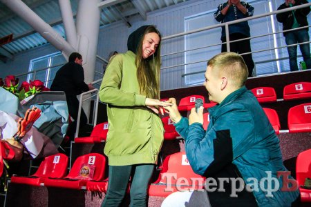 На трибунах льодової арени вперше вболівальник зробив пропозицію своїй коханій. Кристина прийняла пропозицію Олександра:)