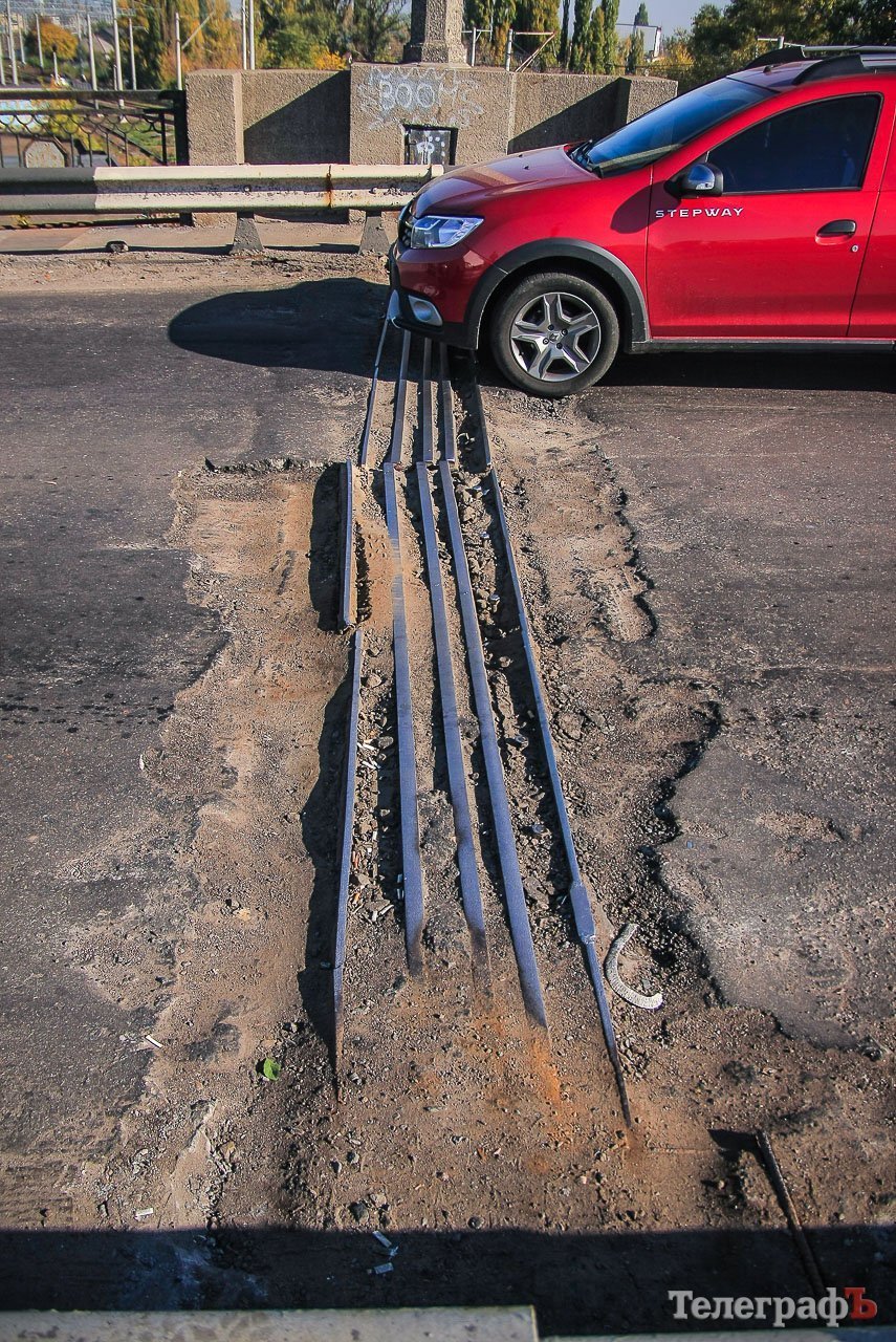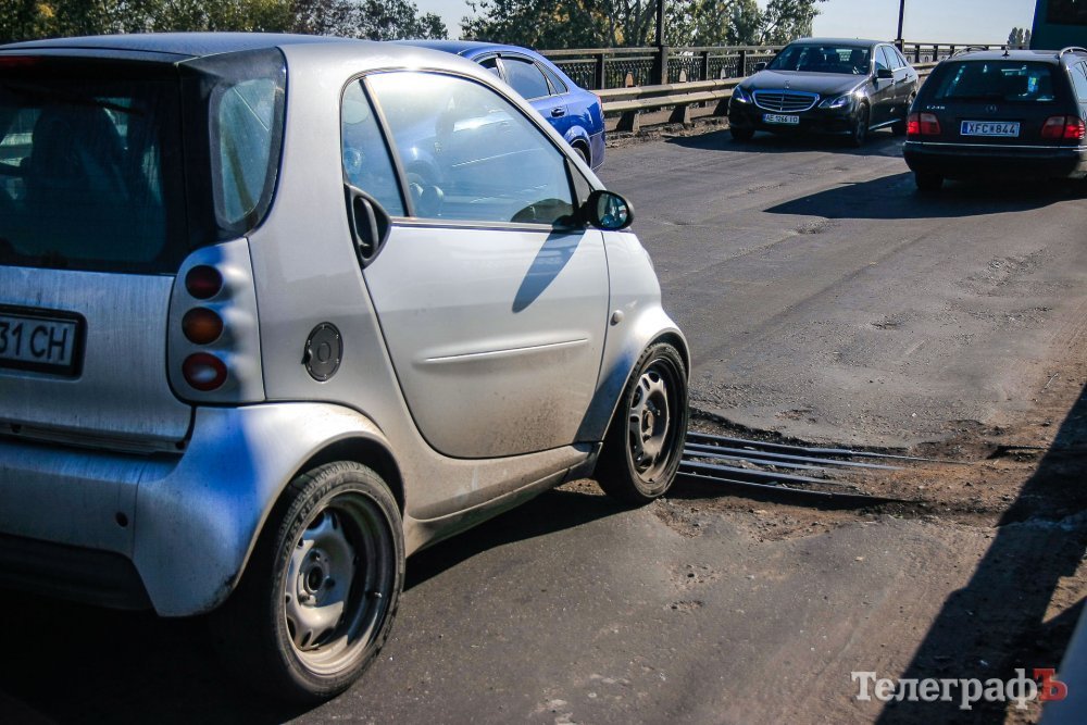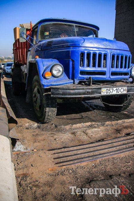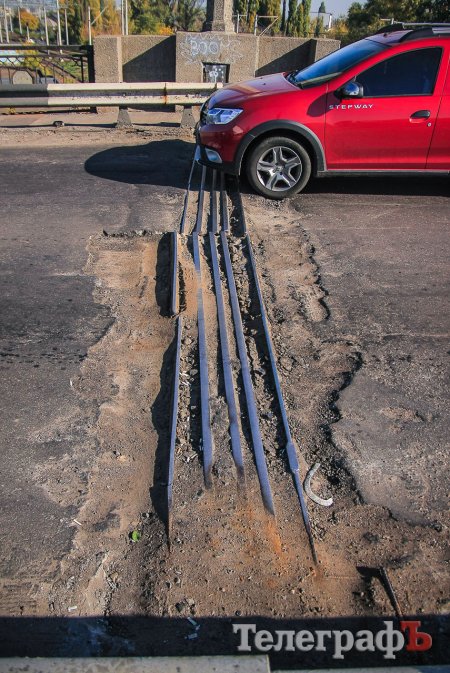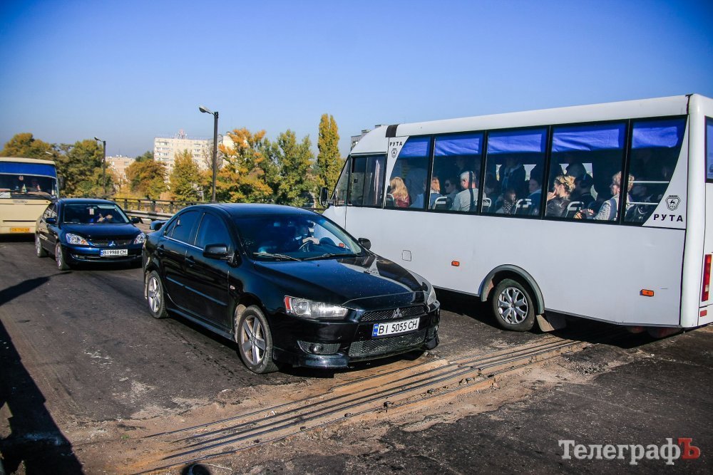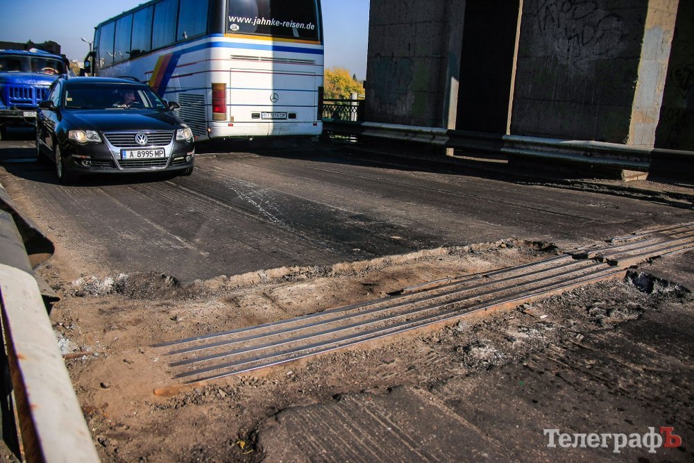 Кременчугское дорожное ремонтно-строительное управление в ночь на 16 октября начало подготовительные работы к асфальтировке Крюковского моста. И хотя работы ведутся в ночное время (по сообщению департамента ЖКХ — с 20.00 до 4.00 утра), автомобилисты испытывают трудности с преодолением моста и в дневное время, так как коммунальники «оголили» стыки. Так, сегодня на мосту и вокруг него образовалась огромная пробка.