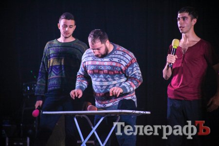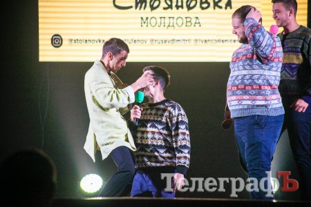 Три команды шоу «Лига смеха»: «Стояновка» (Молдова), «30+» (Житомир) и «Стадион Диброва» (Кривой Рог), - выступали перед кременчугской публикой 15 октября. Нельзя сказать, что большой зал ГДК был забит до отказа. Аншлаг «Лигасмешники» не собрали, поэтому выступление ребята начали с того, что пригласили зрителей с балконов пересесть на места поближе к сцене.