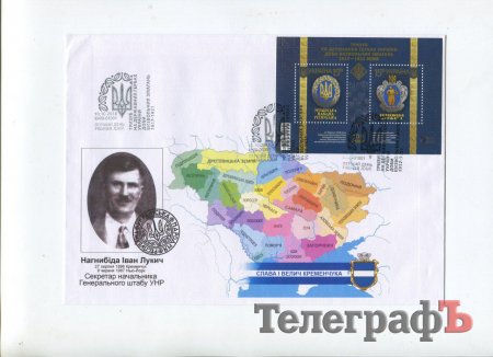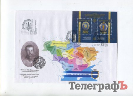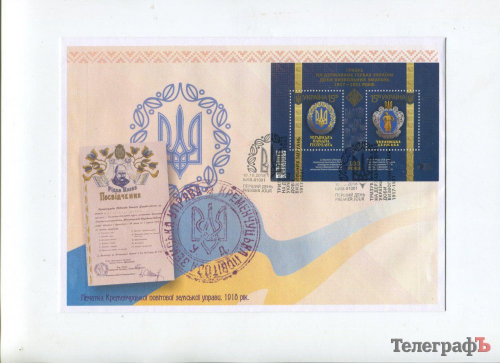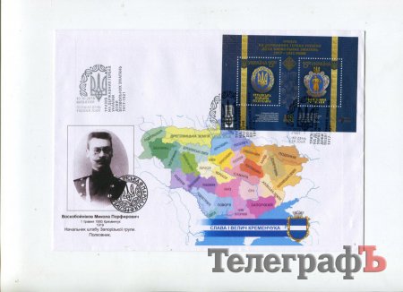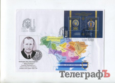 Також погасили конверт з унікальною кременчуцькою печаткою-тризубом того ж 1918 року, кременчуцькими керівниками армії УНР, а також майстром народної творчості України, учасником АТО Юрієм Нечаєм.