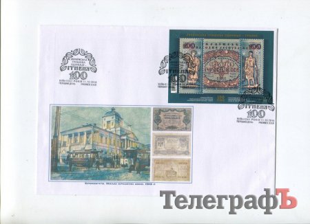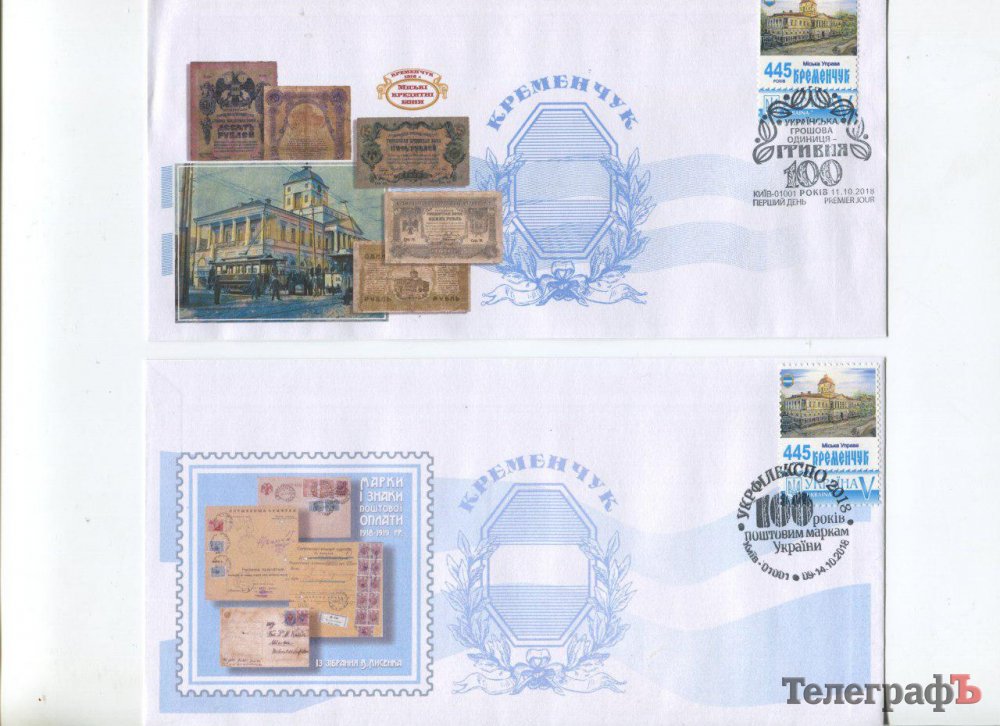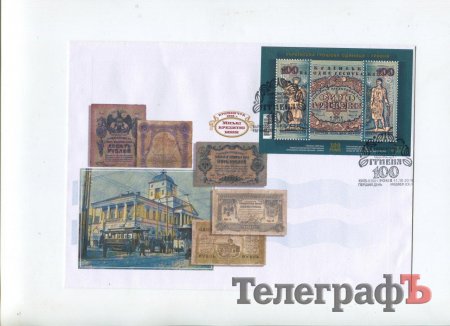 Кременчужани погасили конверти з кременчуцькими кредитними бонами, які випустив кременчуцький банк у 1918 році. Конверт має кілька варіантів дизайну, розробленого Анатолієм Новарчуком.