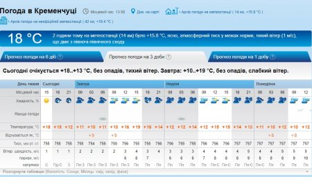 На вихідних погода у Кременчуці почне потроху псуватися - синоптики прогнозують досить теплу погоду, але небо буде хмарним. Можливий невеликий дощик і туман. А ось з наступного тижня дощитиме ледь не щодня і температура повітря спаде до +12°C вдень. Тож насолоджуйтесь бабиним літом, доки воно не пішло...