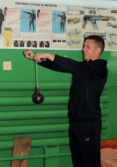 Потім всі бажаючі пройшли перевірку на виконання деяких фізичних вправ, які входять в програму підготовки стрільців. Одна з вправ визвала особливий інтерес. У положенні стоячи необхідно на витягнутих руках зібрати на палицю нитку на якій висить гиря. Вантаж на нитці робив важчим виконання цього завдання, однак найбільш підготовлені змогли впоратися із завданням.