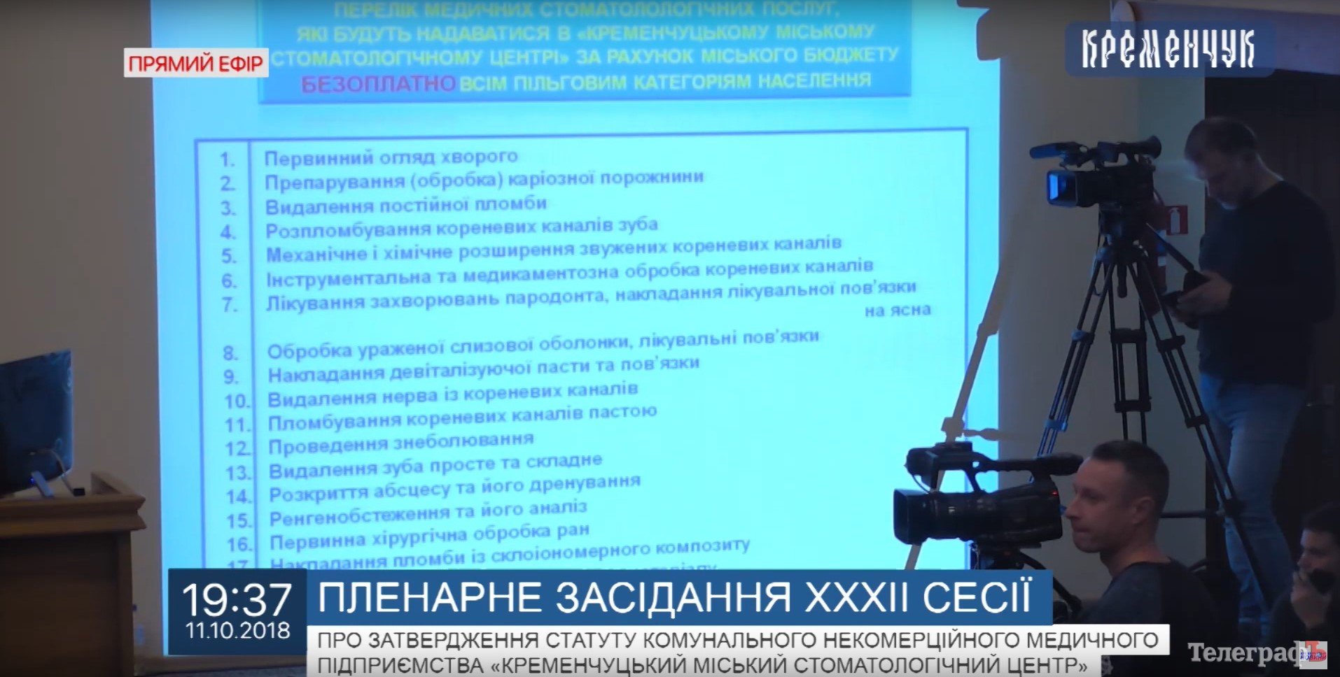Но есть одна проблема – в настоящее время эти 18 бесплатных услуг существуют лишь в формате обещаний чиновников. Перечень бесплатных услуг не включен ни в Программу развития Кременчугского городского стоматологического центра, ни в План мероприятий по реализации этой программы – а именно эти документы утвердили на октябрьской сессии горсовета.