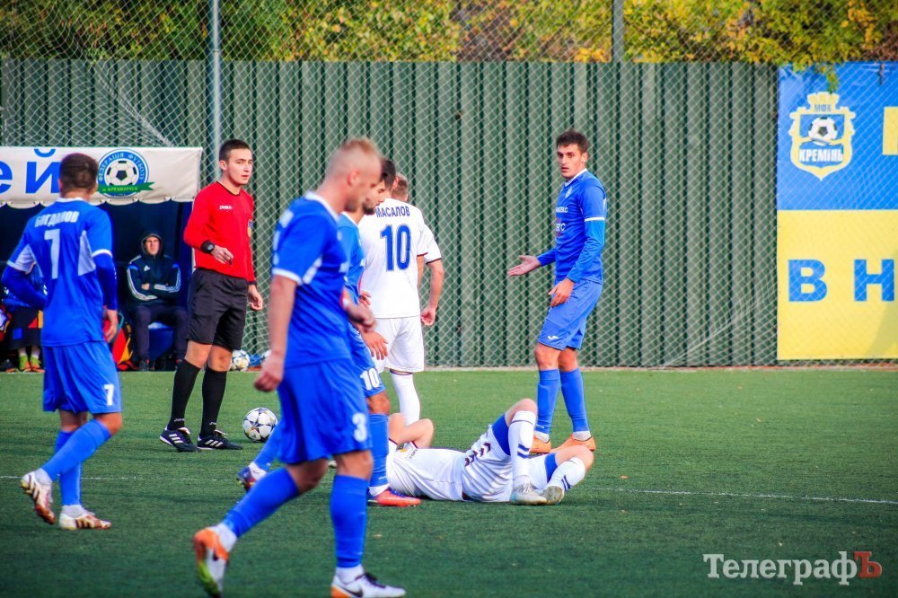 Вже в середині другого тайму «Кремінь» залишився у меншості: Євген Мурашов прямою ногою збив з ніг капітана Анатолія Масалова. Євген отримав червону, а Анатолій – карету швидкої допомоги. До кінця гри команди без особливих моментів догравали матч. Нулі на табло перервали переможну домашню серію «Кременя», вперше в сезоні «синьо-білі» втратили очки на рідному стадіоні, проте нічия дозволяє кременчужнам поки зберігати лідерство в групі Б другої ліги.