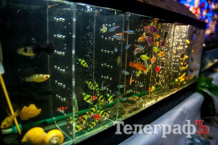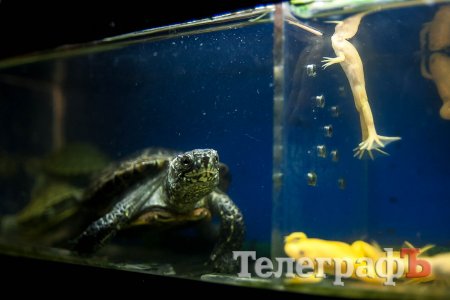 Вот кого точно не ожидаешь встретить на кошачей выставке, так это щенка! Как, впрочем и черепах, креветок, тритонов, аквариумных рыбок! Но они все тоже весьма гармонично вписались в атмосферу.