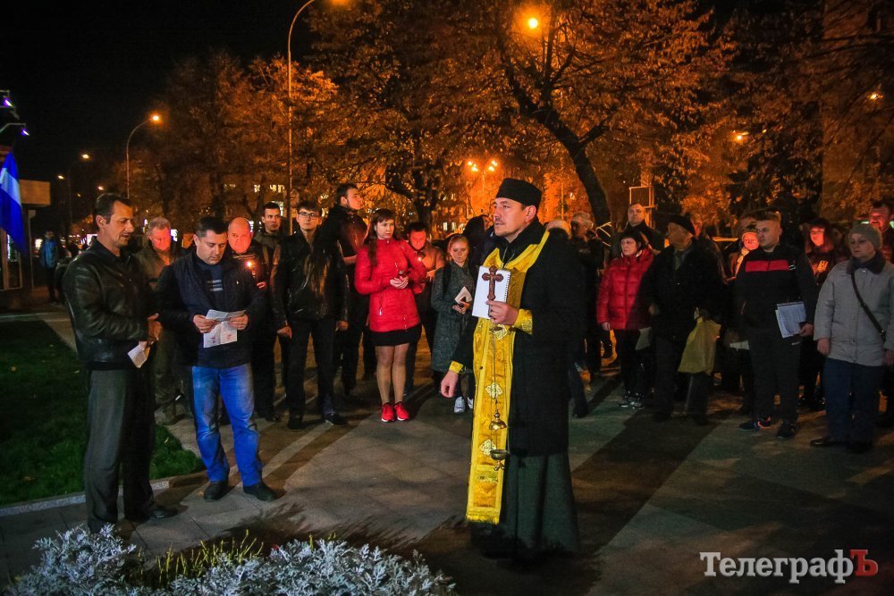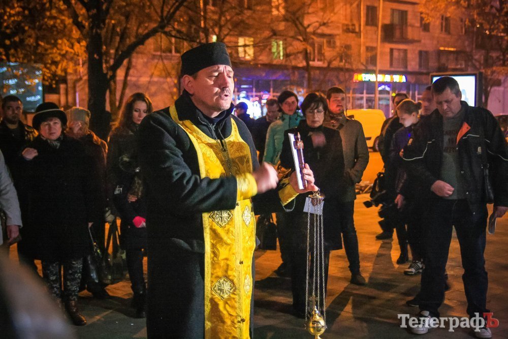 Молебень провів священик Української православної церкви отець Сергій. Після церковного обряду кременчужанам запропонували підписатися під зверненням до президента щодо відставки генпрокурора Юрія Луценка та міністра внутрішніх справ Арсена Авакова.