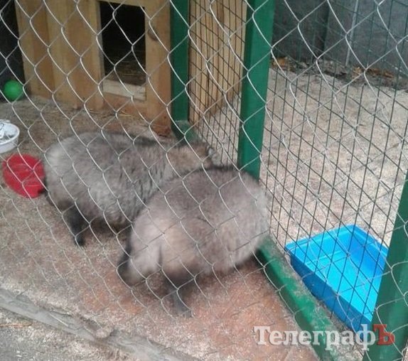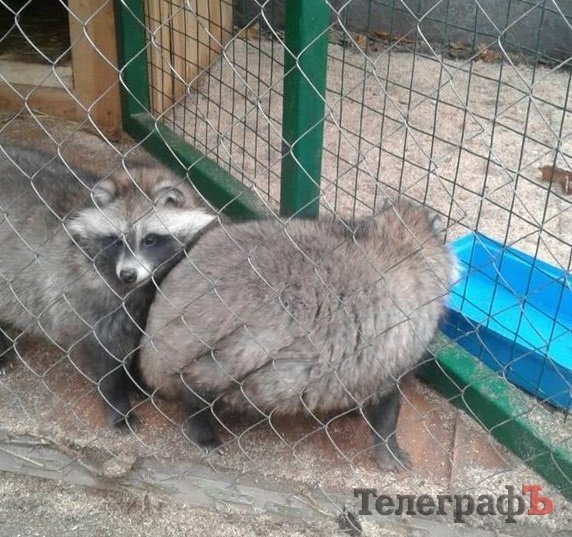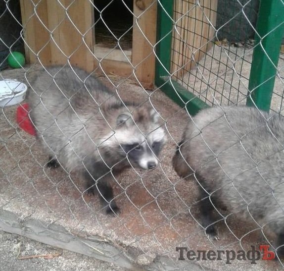 – Лисицю Соню принесли нам першого листопада, на наступний день після того, як зробили щеплення від сказу, а також і всі необхідні вакцинації. У неї є свій власний паспорт, де вказана її дата народження та свідчення всіх щеплень. Цю лисицю батьки дарували своїй дитині, а після того, як награлися нею, попросили прихистку в нашому парку. Вона дуже добра, грайлива, любить людей. За характером майже не відрізняється від Лисмана, – коментар Віталія Дедюріна. – З єнотами також вийшла подібна ситуація, коли люди награлися з тваринами, потім віддали на догляд бабусі в селі, але й їй було важко за ними доглядати, тож ми взяли їх собі. Тварин кожного дня добре годуємо, варимо каші з м’ясом, тварини в нас уже трішки від’їлися. Між собою вони дуже добре взаємодіють, граються м’ячиком. Соня кидає його на територію єнотів, а потім і сама застрибує до них.