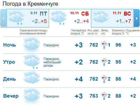 Портал VentuSky, у свою чергу, прогнозує перший у цьому році сніг у Кременчуці, а також дощ удень неділі, 11 листопада. Також того дня очікується сильний вітер. А от субота, 10 листопада, за прогнозами цього сайту не перевищуватиме й +1°C.