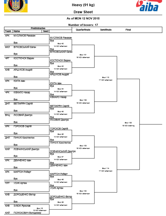 У ваговій категорії 91 кг Артем Усик у першому бою зустрінеться з Робертом Мартоном з Харкова.
