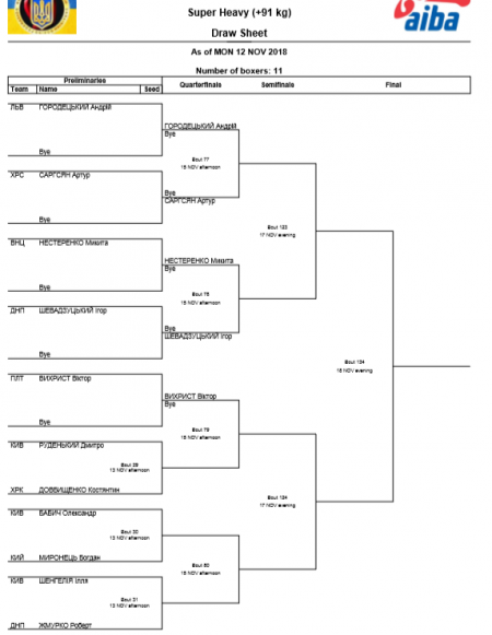 Вихованець СДЮШОР Віктор Вихрист у суперваговій категорії +91 кг зустрінеться з переможцем пари Дмитро Руденький/Костянтин Довбищенко.