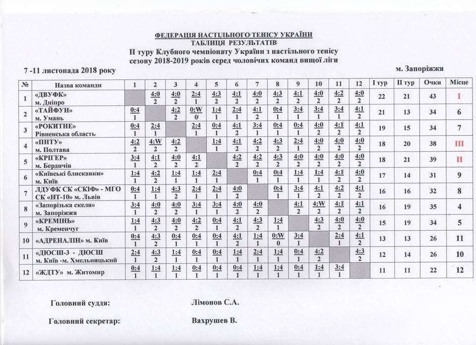 З 7 по 11 листопада у Запоріжжі пройшов ІІ тур чемпіонату України з настільного тенісу у вищій лізі. Кременчук представили вихованці КДЮСШ №1 під керівництвом Сергія Казарян «Кремінь» у складі: Сергій Пономаренко, Олександр Скрипник, Костянтин Мороз, Антон Тур.