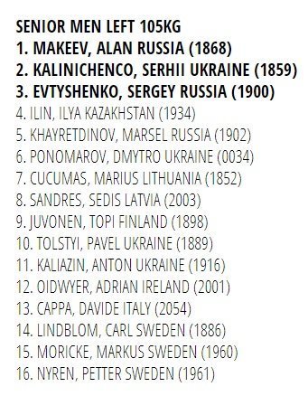 Результати змагань у ваговій категорії 10 кг на ліву руку