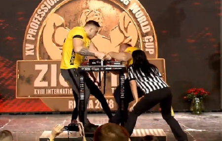 У фіналі в ваговій категорії 105 кг на ліву руку український спортсмен зійшовся з росіянином Аланом Макеєвим. У впертій боротьбі Сергій Калініченко не лише поступився росіянину, завоювавши «срібло» чемпіонату світу з армспорту серед професіоналів, а й отримав серйозне пошкодження лівої руки.