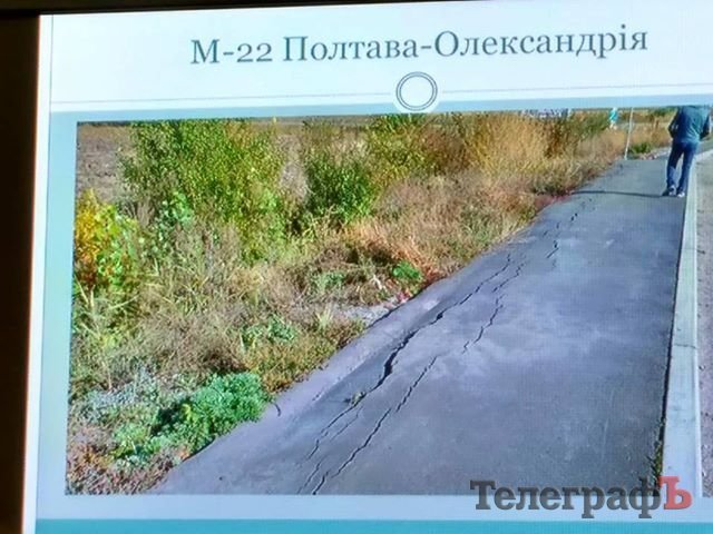 Щодо доріг державного значення, то ГО дослідила трасу Полтава – Олександрія з 6 до 92 кілометра. Як повідомив представник громадської організації Данило Сінельніков, найбільший дефект на відповідній дорозі – відсутність лаштованого узбіччя, занижене узбіччя, а на потенційно небезпечних ділянках відсутні огорожі.