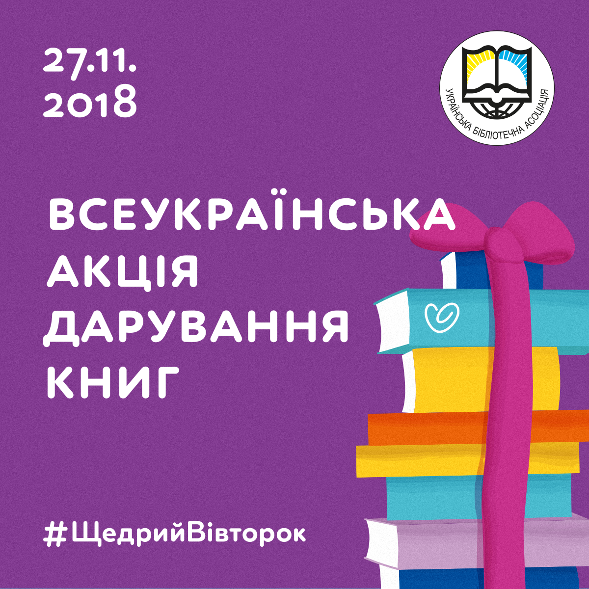 В межах ініціативи #ЩедрийВівторок Українська бібліотечна асоціація оголошує Всеукраїнську акцію дарування книг для бібліотек України.