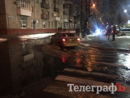 Вечером 24 ноября в центре Кременчуга случился потоп. Забила ключом вода из водопровода и затопила перекрёсток у супермаркета «АТБ» на перекрёстке улиц Игоря Сердюка и Академика Маслова.