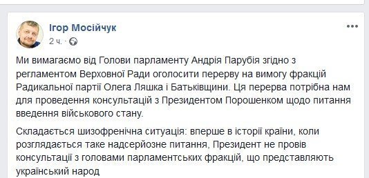 Нардеп Мосийчук (РПЛ) написал по поводу сложившейся ситуации следующее: