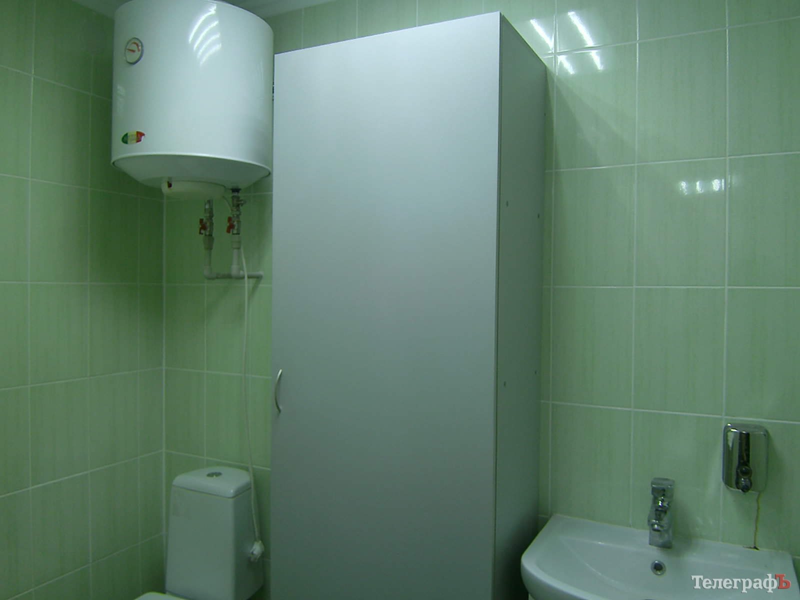 А это – новенький санузел с бойлером и прочими удобствами. Туалет не для сотрудников, он для посетителей кабинета. Здесь им придется регулярно сдавать контрольный анализ мочи на наличие следов других наркотических средств (помимо метадона). Наркоманов, получающих бесплатный метадон, периодически проверяют, чтобы установить, не употребляют ли они, закинувшись метадоном, потом ещё и тяжелые наркотики.