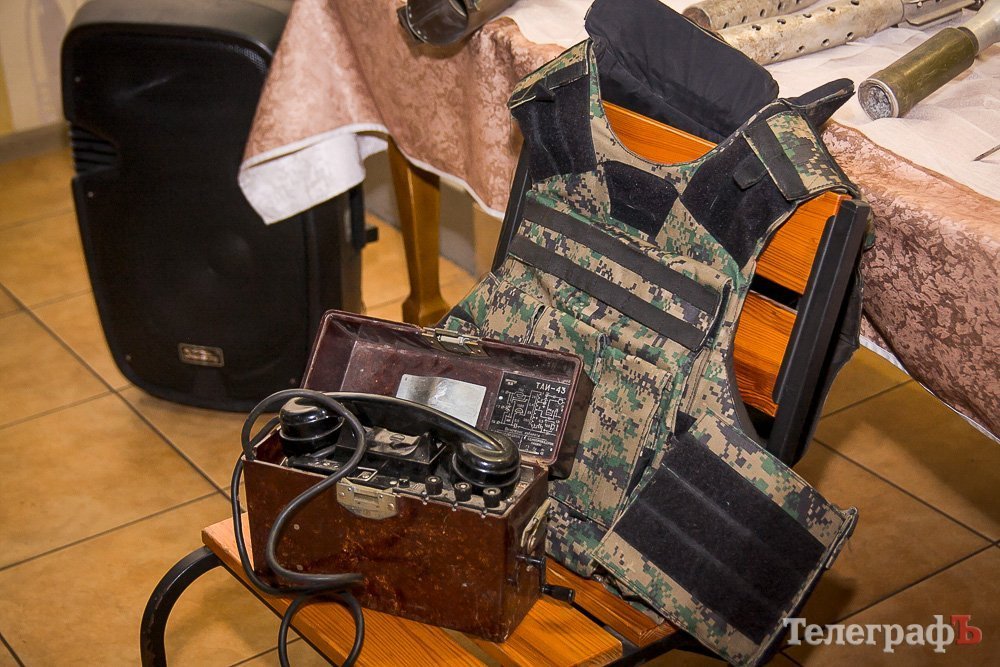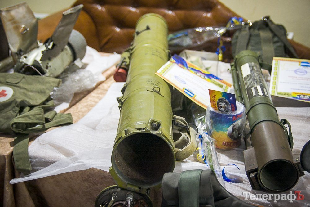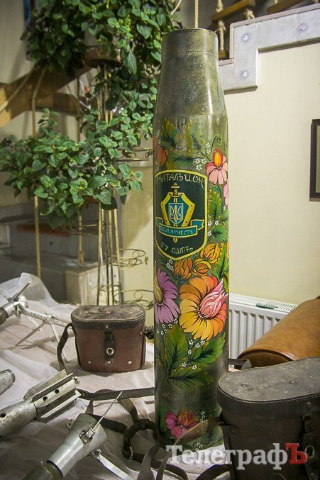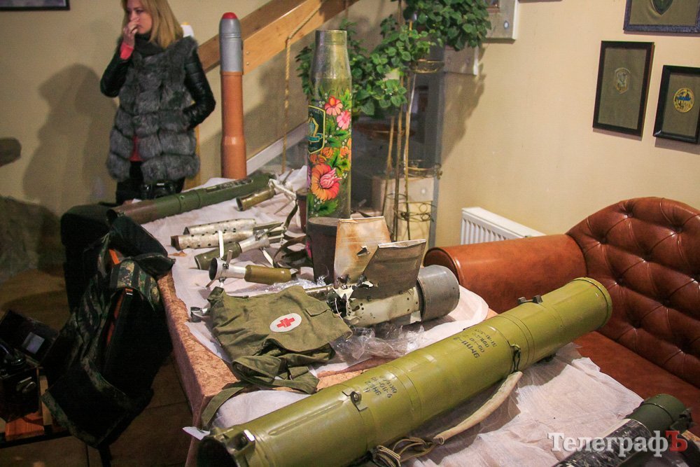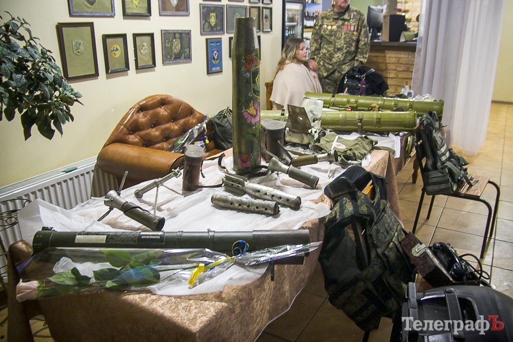 На зустрічі можна було ознайомитися з бойовими трофеями, серед яких російська форма та ніж з триколором, який бійці взяли з арсеналом зброї у 2016 році. Також були представлені зразки зброї та прикрашені петриківським розписом снаряди.