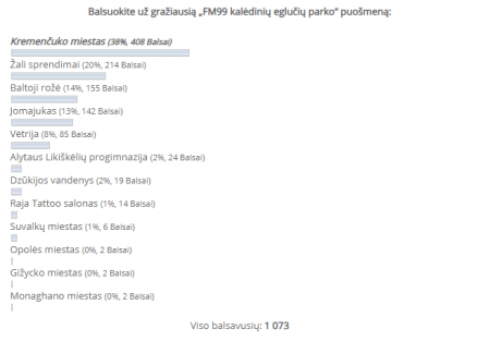 Станом на 9:30 кременчуцька ялинка впевнено лідирує у голосуванні. 38% голосів віддали саме за неї.