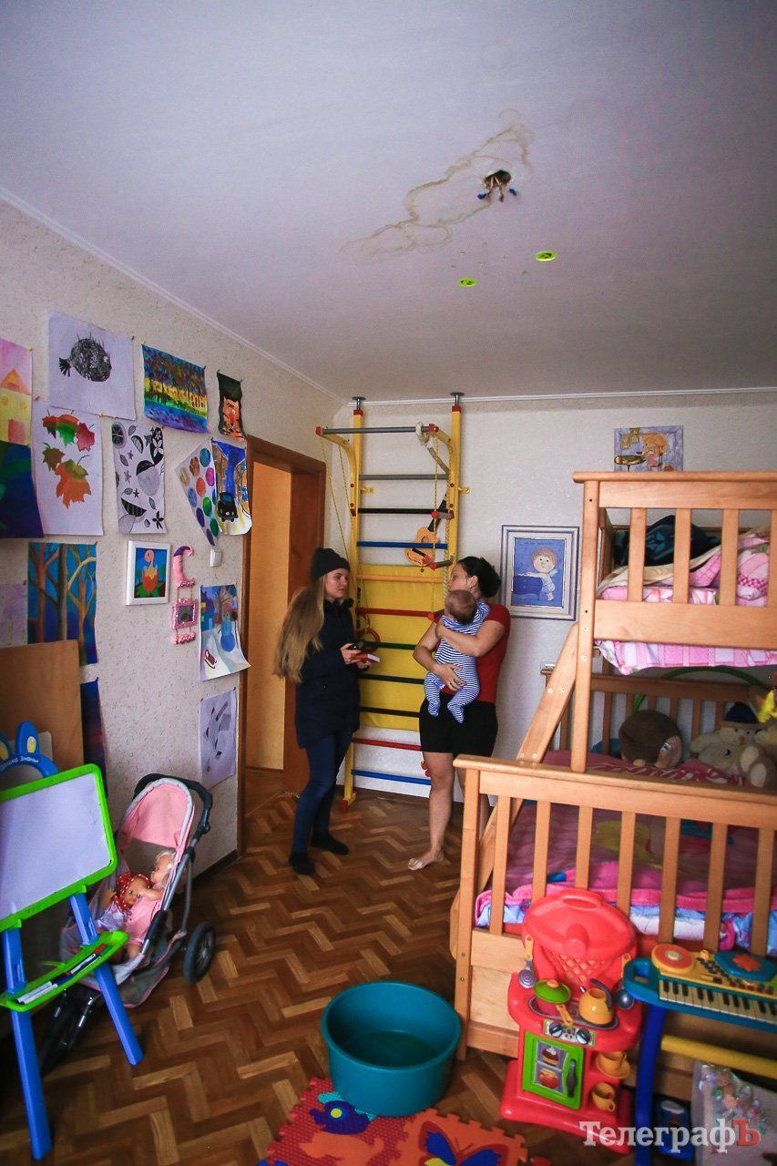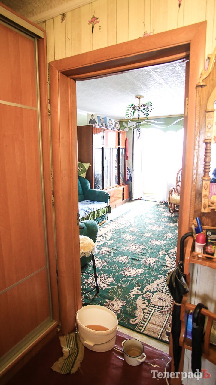 Кременчужанка проживає на четвертому поверсі. За її словами, на початку грудня зі стелі дитячої кімнати почала капати вода. Сьогодні вночі Антоніна вилила півмиски, що натекла з учорашнього вечора.