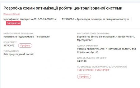Предмет закупівлі - «Розробка схеми оптимізації роботи централізованої системи теплопостачання міста Кременчук». За 999 999 гривень, відповідно до договору, фірма Стікс-Оіл Інжинірінг» береться оптимізувати систему теплопостачання — надати архітектурні, інженерні та планувальні послуги згідно технічного завдання.