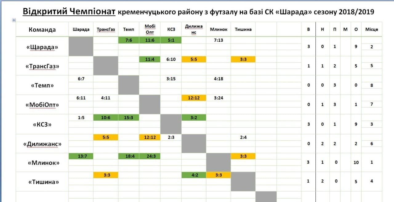У Кременчуці на базі СК «Шарада» триває Відкритий чемпіонат з футзалу. Цими вихідними відбувся 3 тур чемпіонату, в якому незмінним лідером змагань залишається «Млинок».