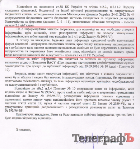 Такі висновки зробили з відповіді підприємства на інформаційні запити