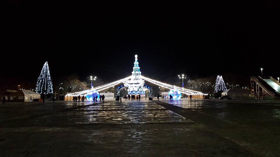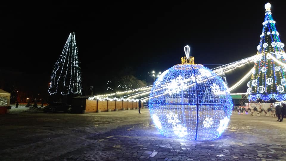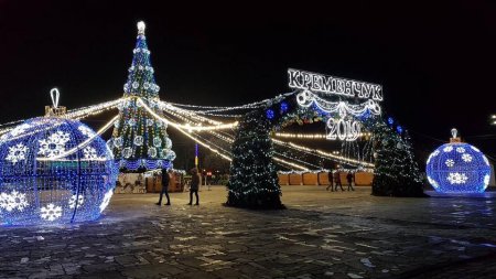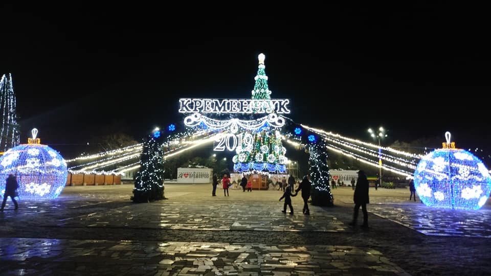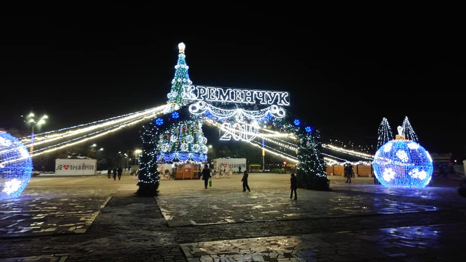 Вечером 17 декабря коммунальники провели пробный запуск главной ёлки Кременчуга. Вчера вся площадь засияла новогодними огнями!