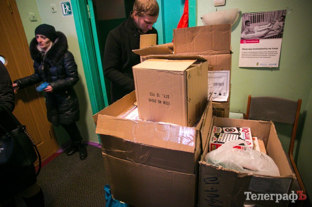 Вранці 19 грудня в коридорі Кременчуцького обласного спеціалізованого будинку дитини не проштовхнутися: один за одним незнайомці несуть великі ящики з подарунками. Немов на конвеєрі люди заносять пакети з підгузками, книжками, хтось тримає санчата.