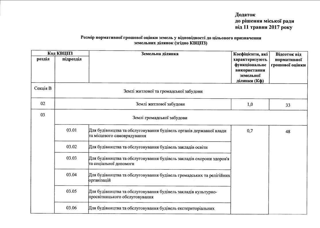 Тобто фактично об’єкти торгівлі та побутового обслуговування отримують найбільшу знижку від Кременчуцької міськради. У 2017 начальник земельного управління Ірина Безверха пояснила це так: чим вище коефіцієнт, встановлений Мінагрополітики, тим нижче коефіцієнт, прийнятий місцевою владою.