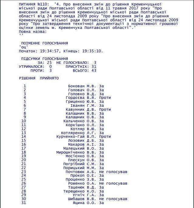 На останній сесії міськради, що відбулася 12 грудня, депутати внесли зміни до рішення міськради від 11 травня 2017 року, яке стосується нормативно-грошової оцінки землі. Рішення звучить так: «в абзаці другому замість слів «по 31 грудня 2018 року» читати «по 31 грудня 2019 року». Проект рішення готував депутат Віталій Таценюк (фракція «Батьківщина»).