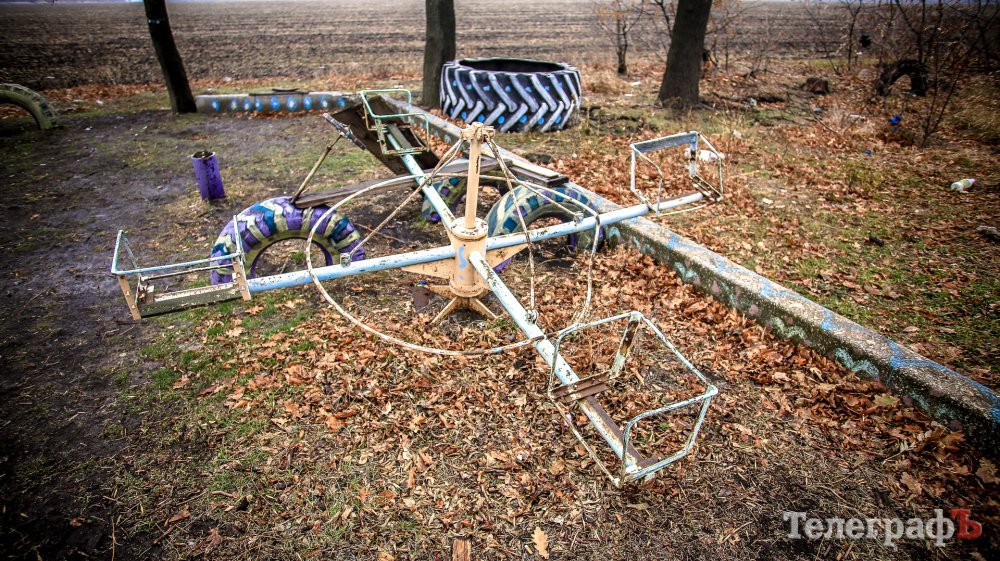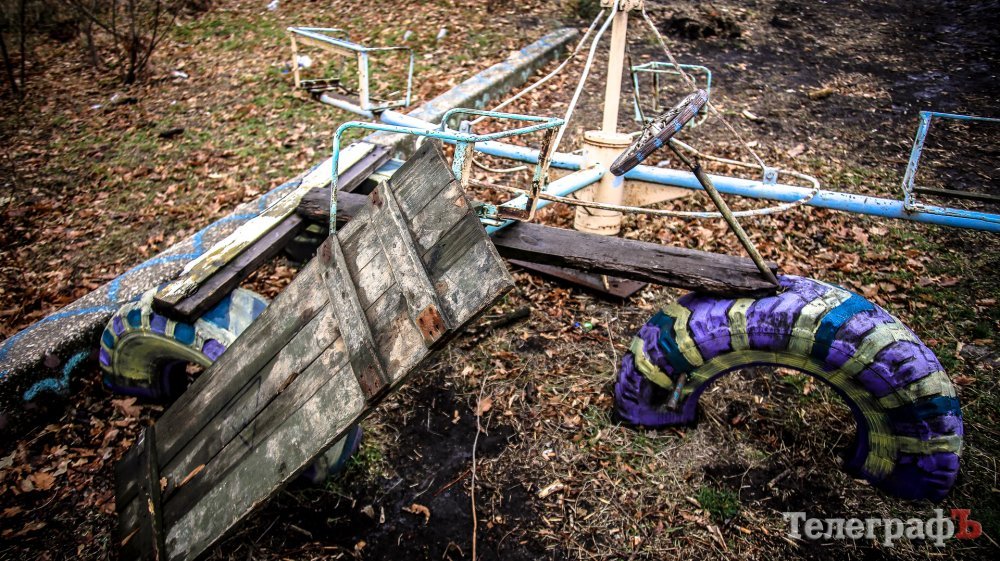 Біля подвір’я в яке ми потрапили знаходилися дитячі гойдалки й баскетбольне кільце, яке вже поросло гіллям.