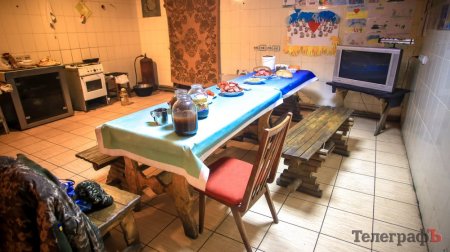 Широкий стіл з лавами, а на стінах малюнки дітей з щирими побажаннями про мир. Оглядаючи малюнки дітей, вуха починає різати не лише російська мова, яка лунає з телевізора, а й сама пропаганда, яка розповідає про загрозу з боку НАТО й українські кораблі, що йшли в Маріуполь з Одеси.