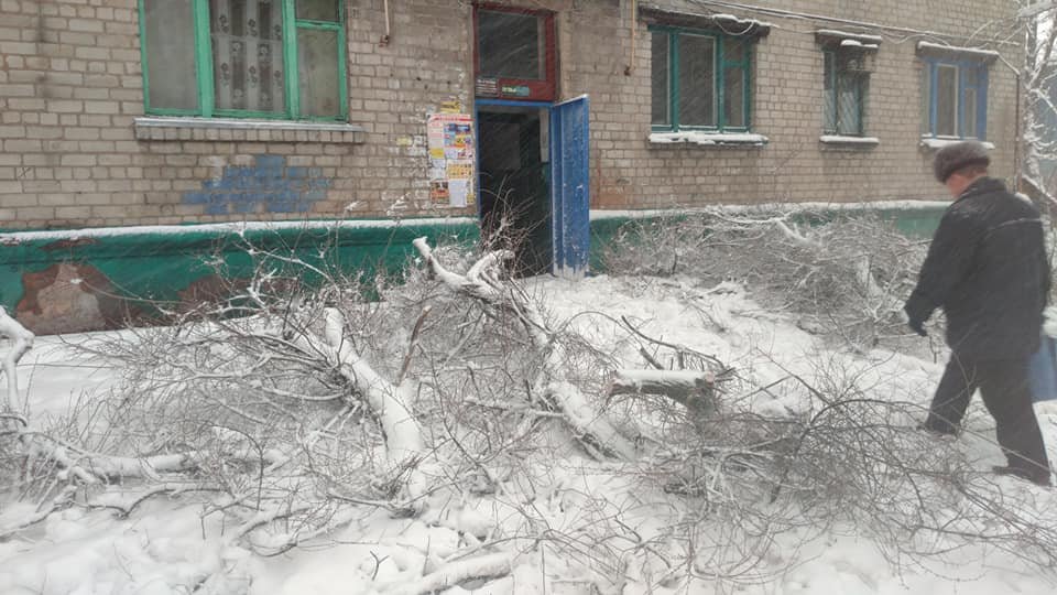Вранці комунальники почали не лише розчищати сніг, а й прибирати з тротуарів та міжквартальних проходів гілки дерев. За інформацією Департаменту ЖКГ виконкому Кременчуцької міськради, одна деревина розкололася біля Кременчуцького краєзнавчого музею. Усували аварію працівники «Благоустрою Кременчука».