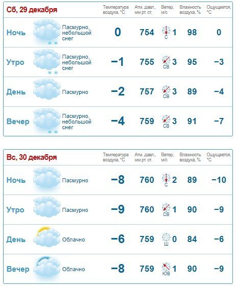 По прогнозу Ventusky, у суботу, 29 грудня, у першій половині дня сніжитиме. У неділю, 30 грудня, практично без опадів. Температура повітря триматиметься на рівні -5°C…0°C.