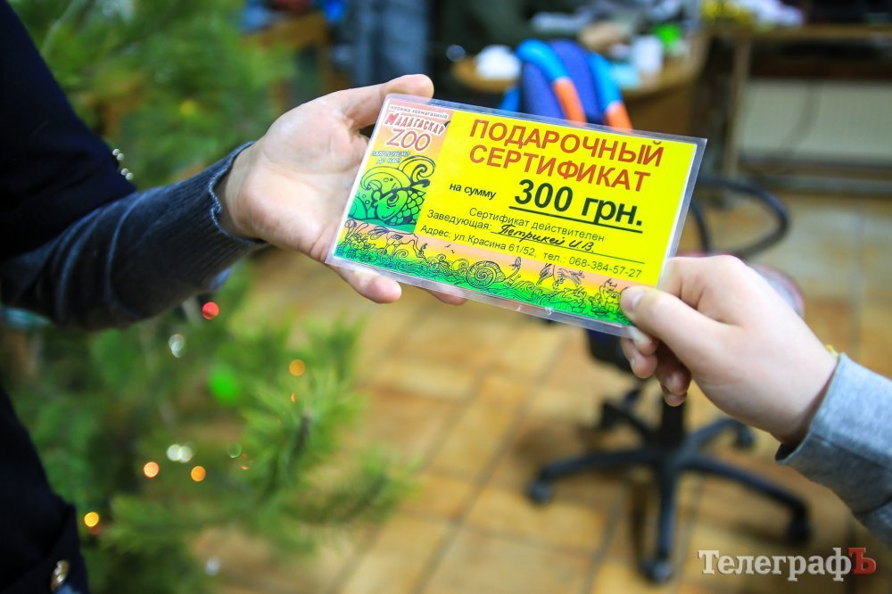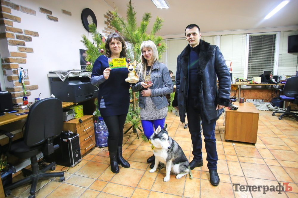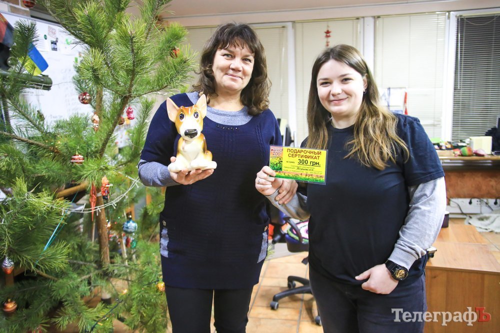 Третьего января в редакции «Телеграфа» заместитель директора КП «Спецсервис-Кременчуг» Марина Кожушко получила приз для своих «актеров» от спонсоров нашего конкурса – сертификат на 300 гривен от зоомагазина «Мадагаскар» и памятный приз от организатора парада в рамках «Кубка Хатико» Геннадия Тертычного.