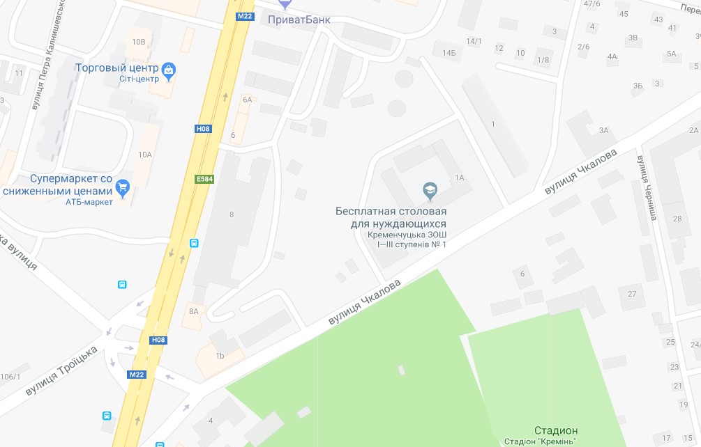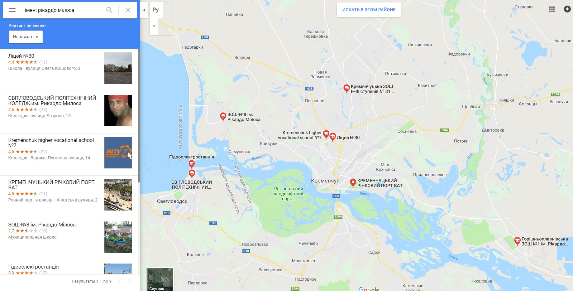 На Google-картах Кременчука з'явилися школи, заправки, магазини, пекарні і навіть міст імені російського співака Юрія Шатунова і бразильського стриптизера Рікардо Мілоса.