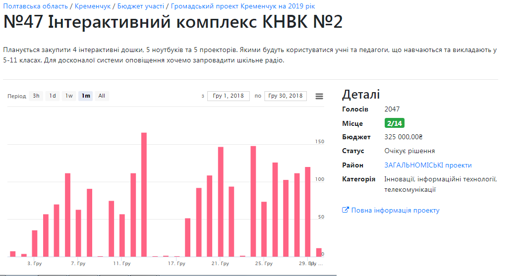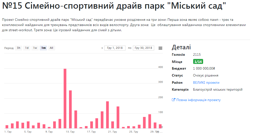Якщо переглянути статистику, то можна побачити сплески голосування. Зокрема 12 грудня за проект проголосувало 399 осіб, 13 грудня – 254.