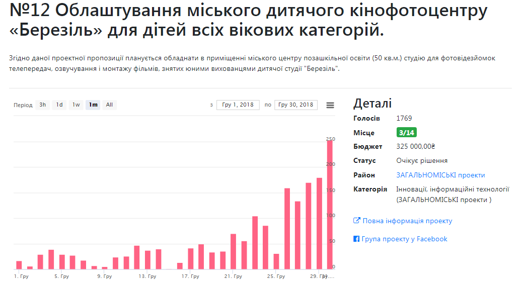 - 17 місце: «Здорові діти – майбутнє нашої держави»(загальноміський проект, авторка – Інна Яценко, голосів – 411);