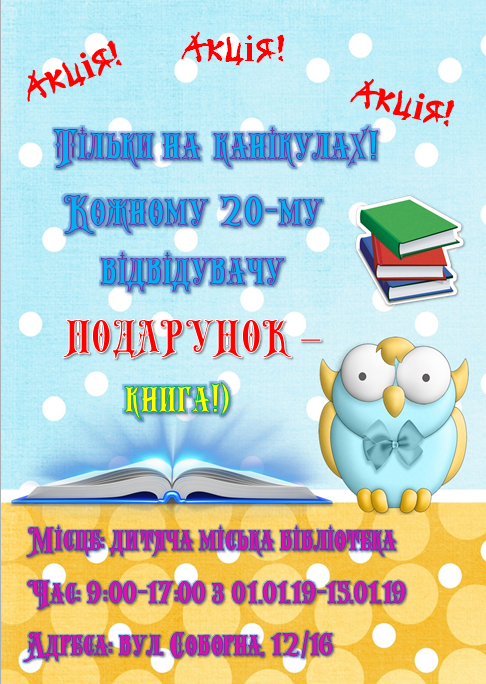 Книжковий подарунок роблять кожному 20-му відвідувачу бібліотеки. Акція триватиме до 16 січня 2019 року.